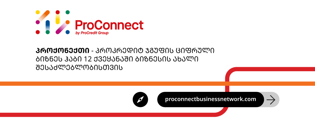 “პროქონექთი” პროკრედიტ ჯგუფის სრულიად ახალი, ინოვაციური ციფრული სივრცეა, რომელიც ბიზნესს ქვეყნის საზღვრებს მიღმა განვითარების შესაძლებლობას უქმნის.